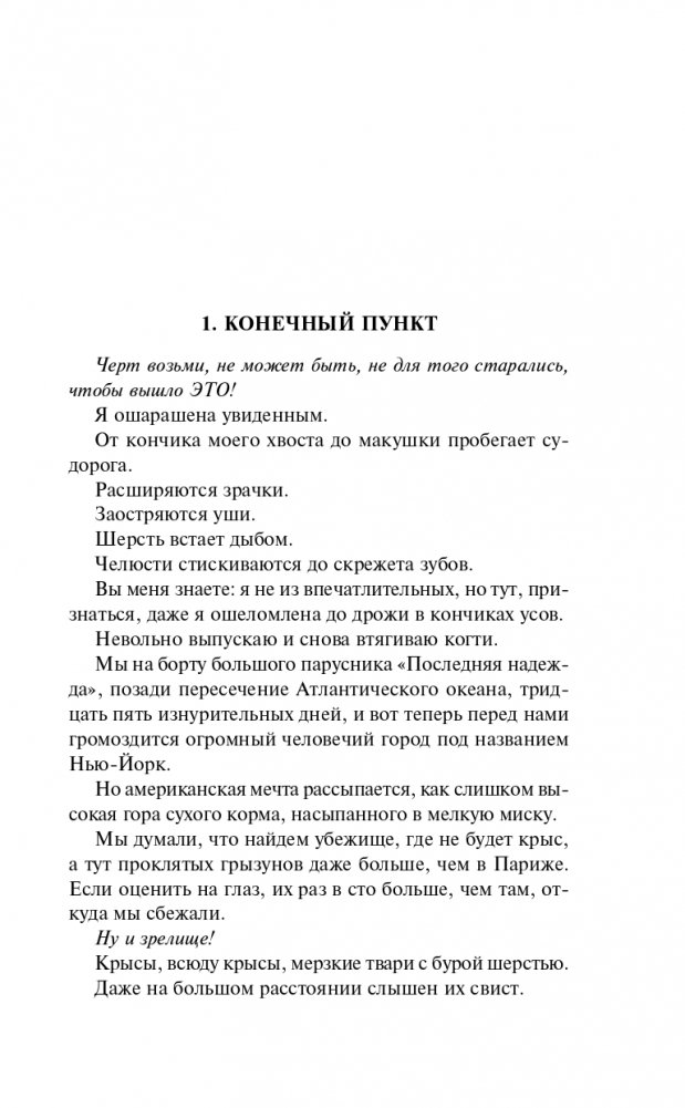 Парусник "Последняя надежда" наконец-то доставляет Бастет, Пифагора и других членов разномастного экипажа в Нью-Йорк. Вопреки их ожиданиям, каждый квадратный метр мегаполиса кишит крысами, и последние выжившие люди вынуждены искать убежища в новой башне Всемирного торгового центра. Теперь поредевшему кошачьему отряду придется применить всю смекалку, чтобы низвергнуть своих давних врагов и спасти человечество. Но достойно ли оно спасения?