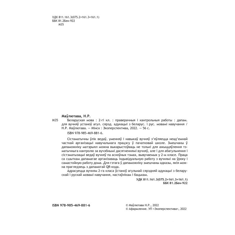 Сістаматычны ўлік ведаў, уменняў і навыкаў вучняў з’яўляецца неад’емнай часткай арганізацыі навучальнага працэсу ў пачатковай школе. Змешчаны ў дапаможніку матэрыял можна выкарыстоўваць не толькі для ажыццяўлення тэматычныга кантролю за вучэбнымі дасягненнямі вучняў, але і для абагульнення і сістэматызацыі ведаў вучняў па асноўных тэмах, вывучаемых у 2-м класе. Праца са сшыткам дапамагае арганізаваць індывідуальную работу з вучнямі на ўроку і самастойную работу дома. Для гэтага ў дапаможніку змешчаны адказы, якія можна прагледзець з дапамогай QR-кода.
