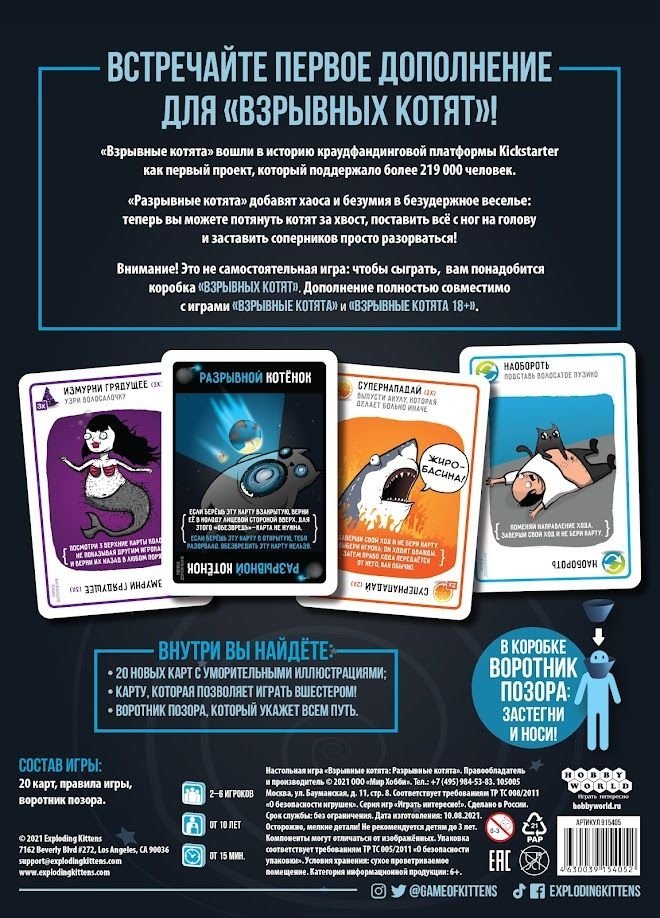Внимание! Это дополнение. Для игры вам понадобится базовая версия "Взрывные котята" или "Взрывные котята 18+".