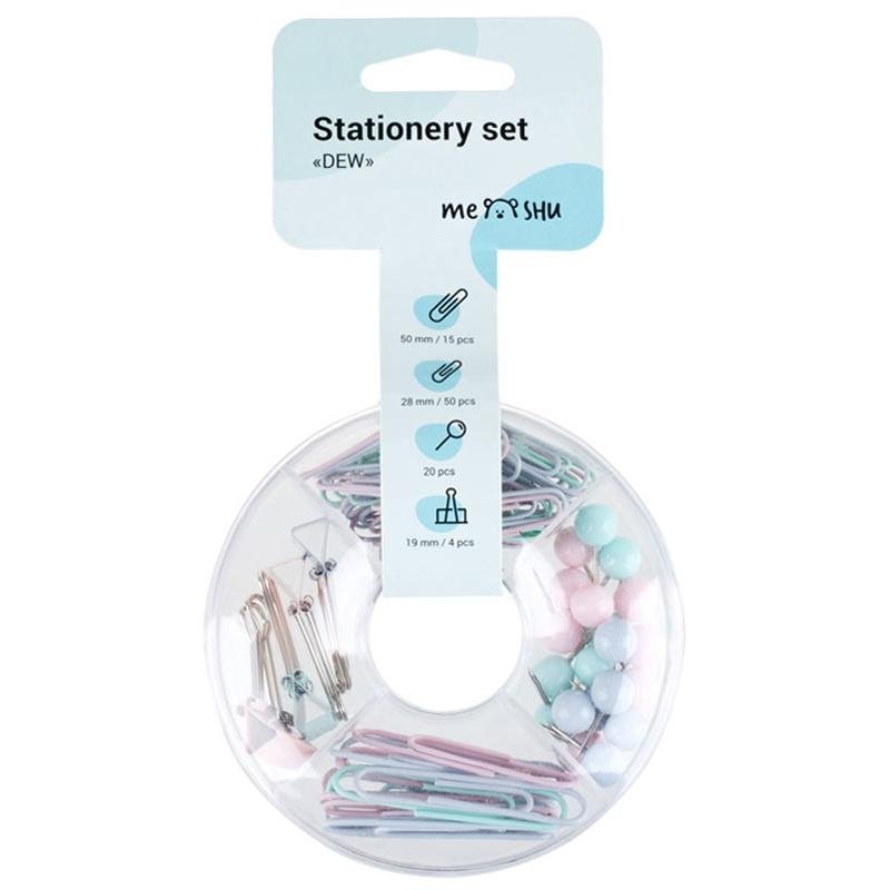 Набор мелкоофисных принадлежностей Meshu "Dew", 89 предметов, пастельные цвета, пластиковый пенал, европодвес
