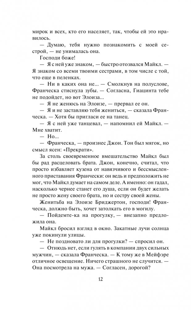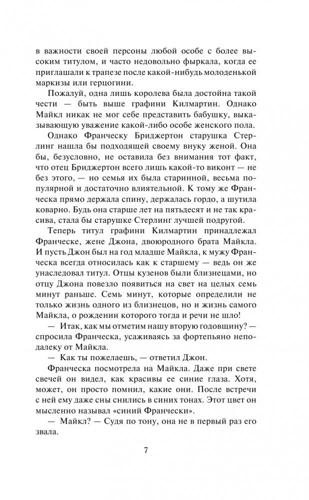 Год за годом светский повеса и обольститель, потерявший счет своим победам, Майкл Стерлинг скрывал за показной веселостью и легкомыслием сердечную рану — тайную любовь к Франческе Бриджертон, верной и добродетельной жене его кузена, графа Килмартина.