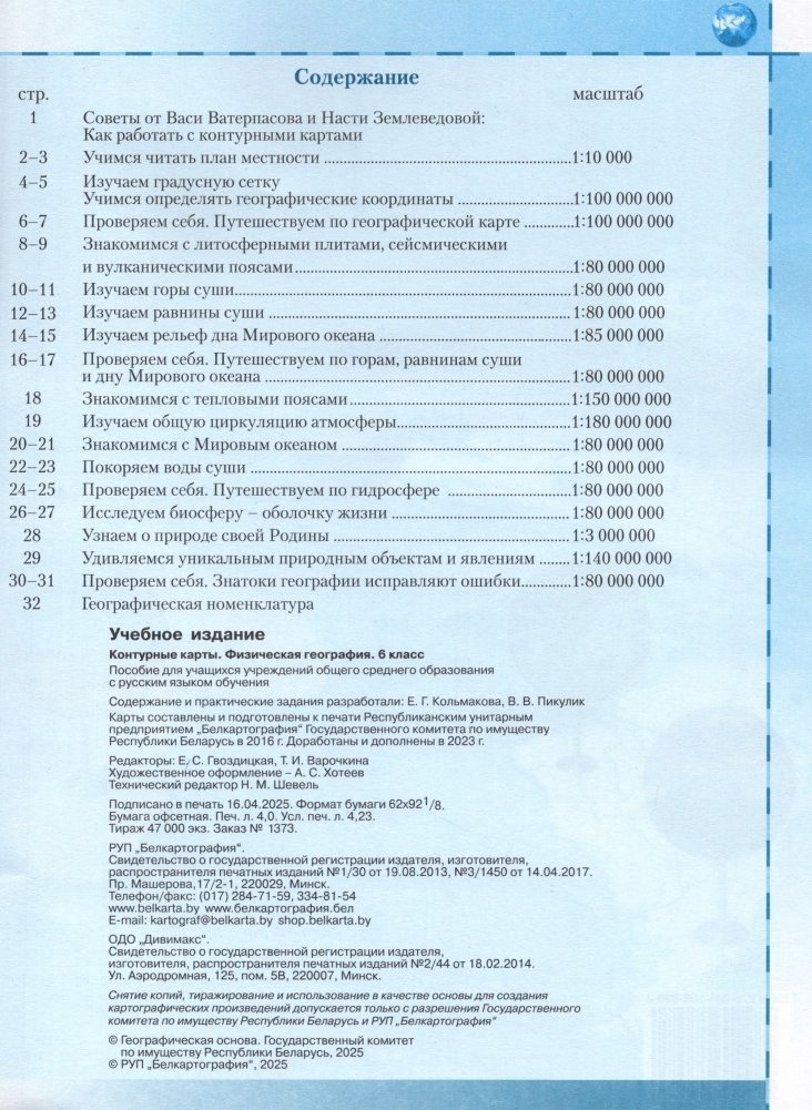 Контурные карты. Физическая география. 6 класс. ГРИФ