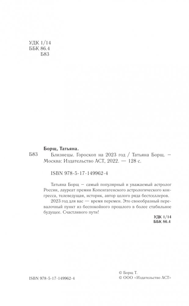 Татьяна Борщ – самый популярный и уважаемый астролог России, лауреат премии Копенгагенского астрологического конгресса, телеведущая, историк, автор целого ряда бестселлеров.