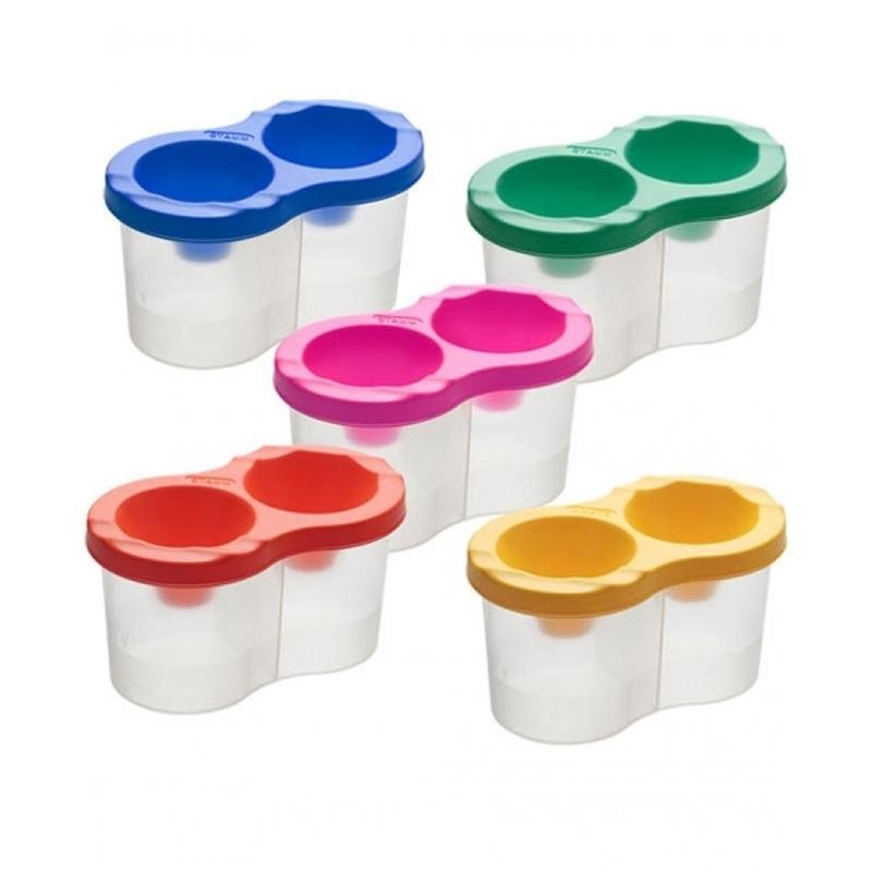 Стакан-непроливайка предназначен для промывания кисточек в процессе рисования. Имеет два отделения. Форма крышек в виде воронки не даст ребенку пролить воду в процессе творчества при опрокидывании. Специальные линии (метки безопасного уровня воды) указывают на оптимальный уровень наполнения стакана водой. На крышках имеются продольные желобки для кисточек. Устойчиво располагается на рабочей поверхности.