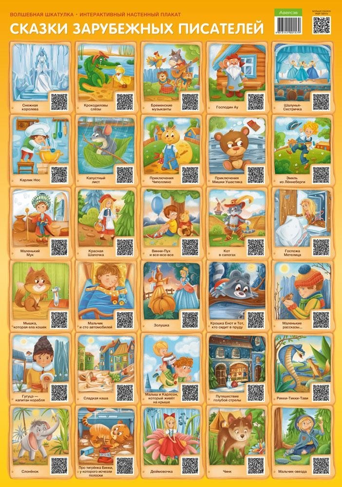 В интерактивном плакате собраны аудиоверсии 30 сказок зарубежных писателей из хрестоматии «Волшебная шкатулка». Все сказки рекомендованы учебной программой дошкольного образования, озвучены профессиональными актерами, оранжированы звуковыми эффектами и музыкальными композициями.