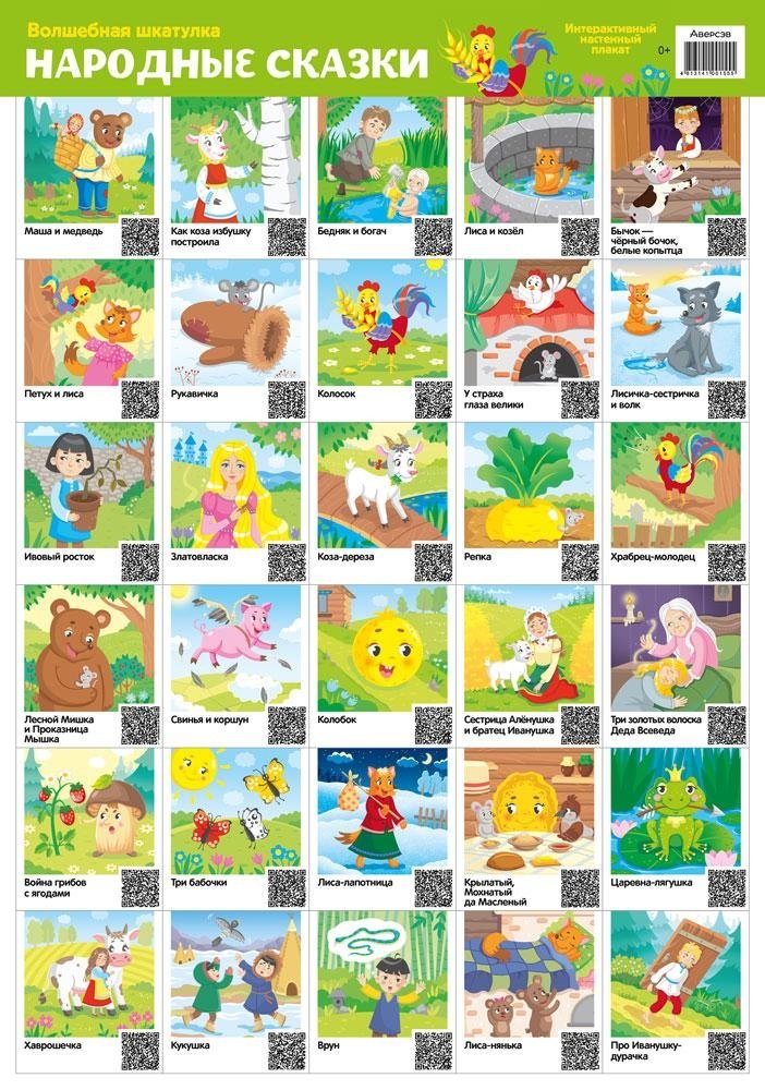 В интерактивном плакате собраны 30 аудиоверсий народных сказок из хрестоматии «Волшебная шкатулка». Сказки озвучены профессиональными актерами, оранжированы звуковыми эффектами и музыкальными композициями.