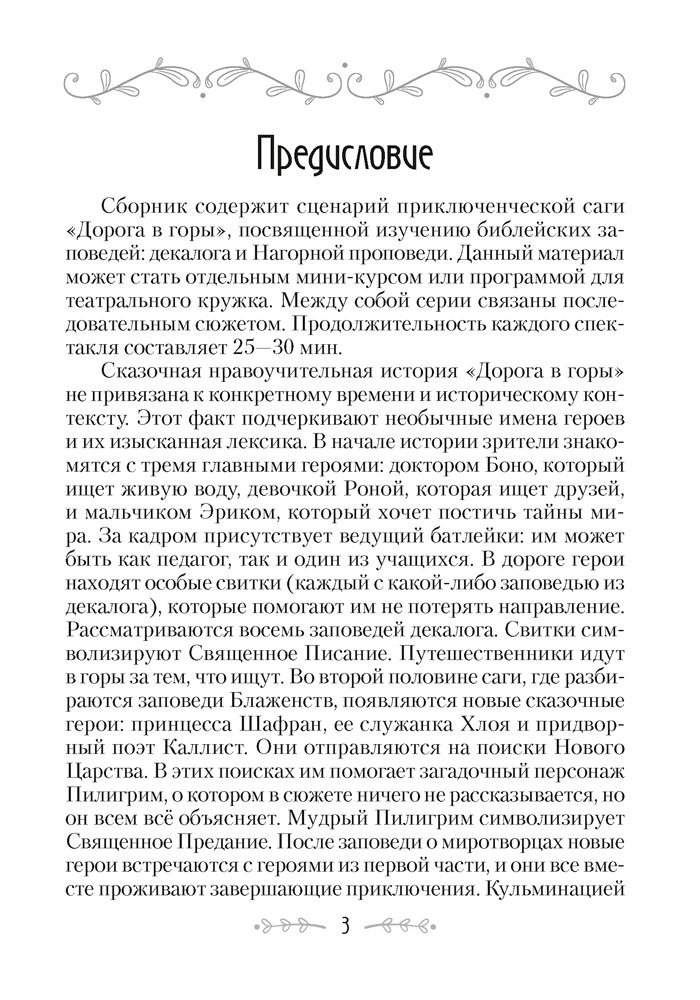 Сборник содержит сценарий приключенческой саги «Дорога в горы», посвященной изучению библейских заповедей: декалога и Нагорной проповеди. Сценарий рассчитан на учебный год. Материал может быть использован как на факультативных занятиях, так и в рамках системы дополнительного образования.