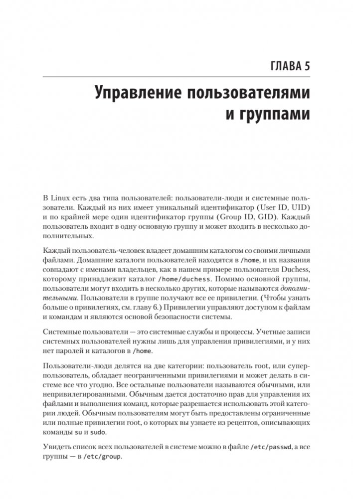 Книга рецептов обучит начинающих пользователей и администраторов Linux управлять системой, используя как графические инструменты, так и командную строку. Независимо от того, используете ли вы Linux во встроенных или настольных системах, серверах, облачных или виртуальных средах, фундаментальные приемы одни. Цель книги - помочь вам быстро приступить к работе на простых и наглядных примерах. Карла Шредер приводит рецепты с объяснениями для конкретных ситуаций, а также ссылки для дополнительного изучения.