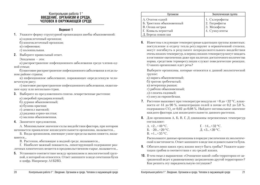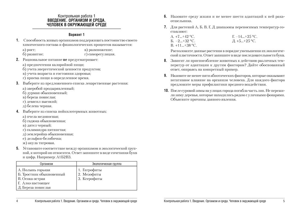 Сборник содержит контрольные и самостоятельные работы по биологии для 10 класса, представленные в четырех вариантах. Все варианты включают разноуровневые задания, которые разработаны согласно нормам оценки результатов учебной деятельности учащихся. Содержание работ соответствует учебным программам для базового и повышенного уровней.