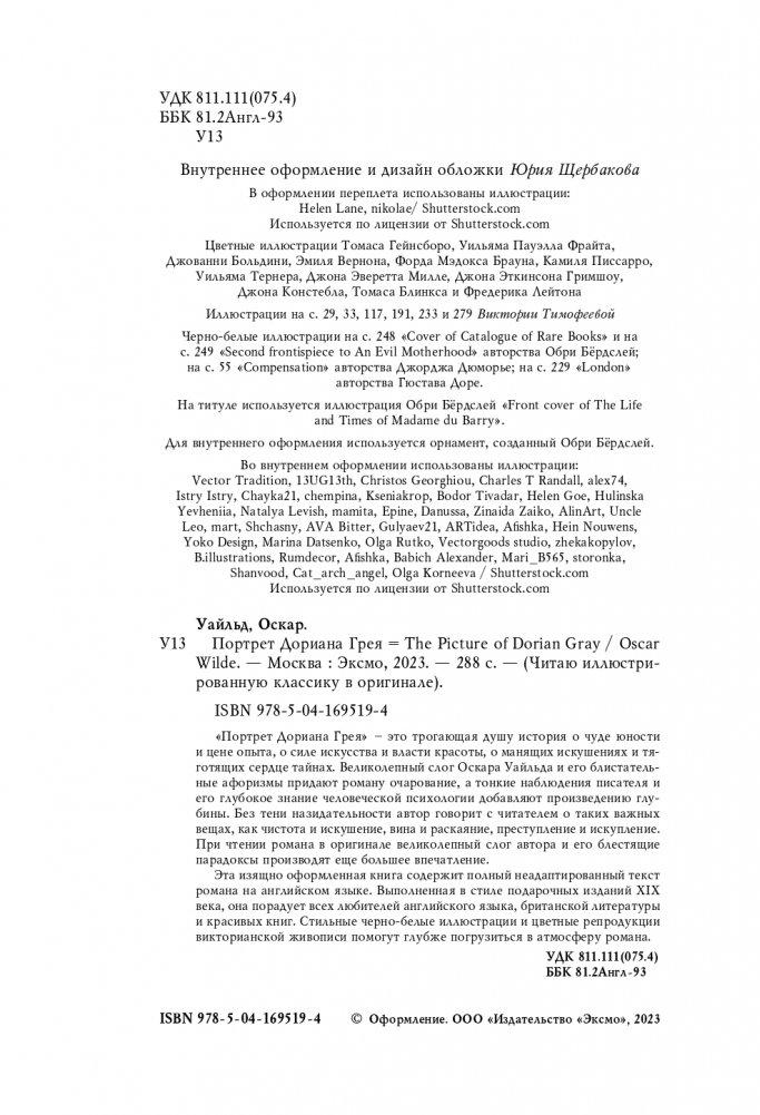 Этот роман был обречен на успех. В нем есть и оригинальный фантастический сюжет, и невероятно харизматичные персонажи, и безукоризненно изящный слог, и множество удивительных парадоксов, которыми славится Оскар Уайльд. История о погоне за молодостью и красотой перерастает в рассказ о тайнах человеческой души и об опасностях, которые таит исполнение заветных желаний. Читайте неадаптированный текст романа на оригинальном английском языке в нашем стильном подарочном издании и погружайтесь в мир красоты и искушений.