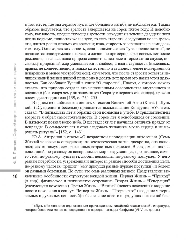 Рассматриваются физиологические, психологические и философские аспекты проблемы старения и личностного реагирования на него. Декларируется необходимость спокойного подведения итогов жизни и формирования собственного отношения к бренности существования. Подчеркивается важность творческой активности личности в противодействии негативным проявлениям старости. Описываются мероприятия, способствующие стабилизации психологического состояния пожилых людей. Обосновываются реальность сохранения полноценного функционирования, возможность плодотворной, радостной и наполненной смыслом жизни в пожилом возрасте, указываются конкретные пути реализации этой возможности.