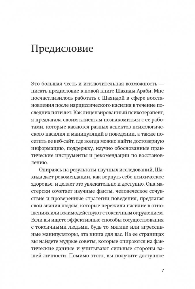 Когда по сети разошлась статья Шахиды Араби «20 отвлекающих маневров, с помощью которых нарциссы, социопаты и психопаты манипулируют вами и затыкают вам рот», ее прочитали более 18 миллионов человек по всему миру. Как жертвы манипуляторов, так и специалисты в области психического здоровья с энтузиазмом делились ею и признавали ее правоту. К сожалению, никто из нас не застрахован от общения с токсичными людьми, которыми могут оказаться коллеги, семейный партнер или даже родители. При этом вас могут убеждать, что вы слишком остро реагируете, раздуваете из мухи слона, и применять другие тактики психологических манипуляций. Манипуляторы могут быть «мягкими» и агрессивными. Токсичность может проявляться по-разному. Однако важнейший жизненный навык, который необходимо в себе развить, — это готовность дать отпор любому манипулятору и всем возможным проявлениям токсичности в отношениях.
