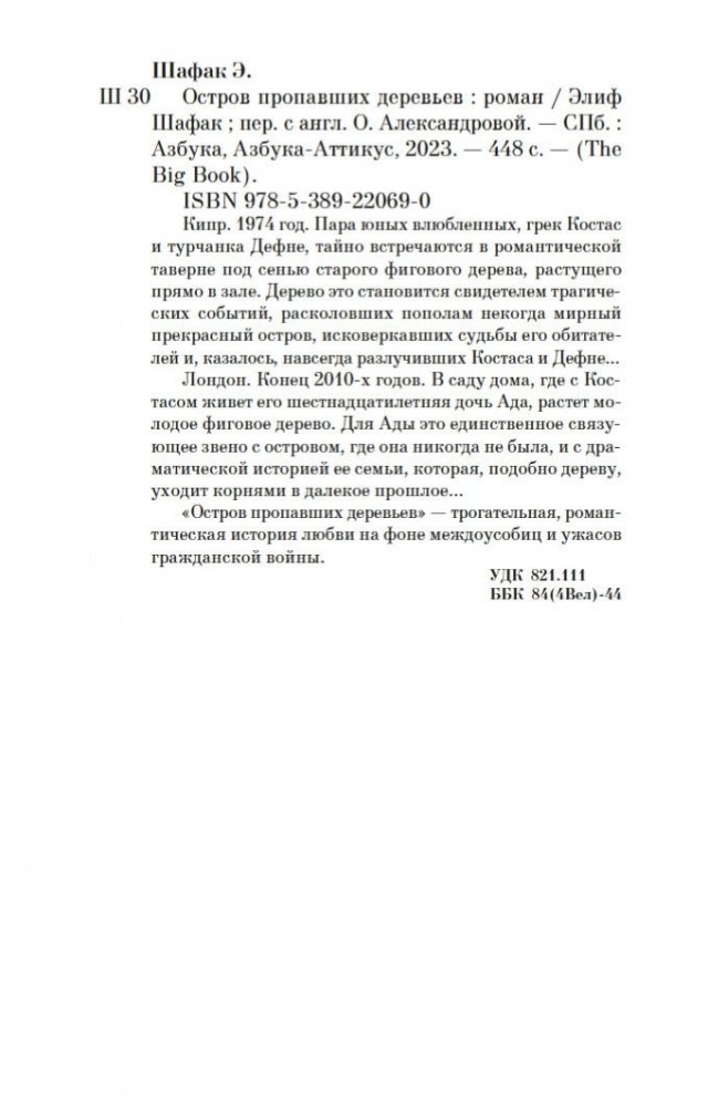 Кипр. 1974 год. Пара юных влюбленных, грек Костас и турчанка Дефне, тайно встречаются в романтической таверне под сенью старого фигового дерева, растущего прямо в зале. Дерево это становится свидетелем трагических событий, расколовших пополам некогда мирный прекрасный остров, исковеркавших судьбы его обитателей и, казалось, навсегда разлучивших Костаса и Дефне… Лондон. Конец 2010-х годов. В саду дома, где с Костасом живет его шестнадцатилетняя дочь Ада, растет молодое фиговое дерево. Для Ады это единственное связующее звено с островом, где она никогда не была, и с драматической историей ее семьи, которая, подобно дереву, уходит корнями в далекое прошлое… «Остров пропавших деревьев» — трогательная, романтическая история любви на фоне междоусобиц и ужасов гражданской войны.