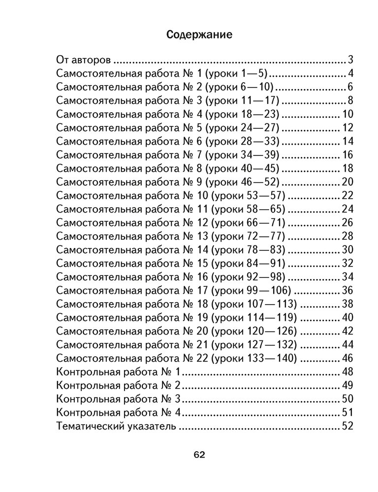 Пособие составлено в соответствии с учебной программой. Каждая самостоятельная работа представлена в одном варианте и относится к указанным в издании урокам учебного пособия «Математика. 4 класс» авторов Г. Л. Муравьёвой и М. А. Урбан.