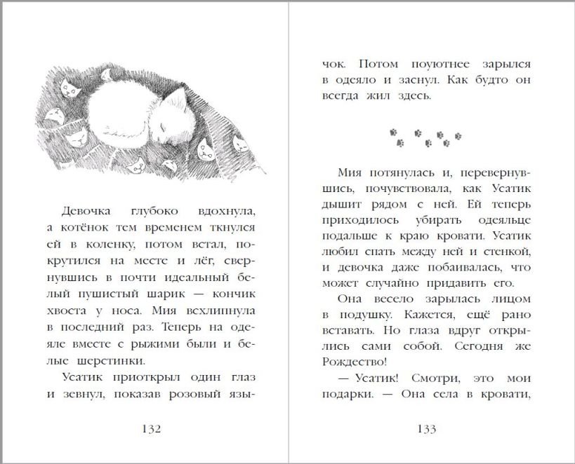 Это специальное новогоднее издание с красивой обложкой, на которой будто бы переливается снег. Внутри белая бумага и крупный шрифт, который удобно читать, и прекрасные чёрно-белые иллюстрации.