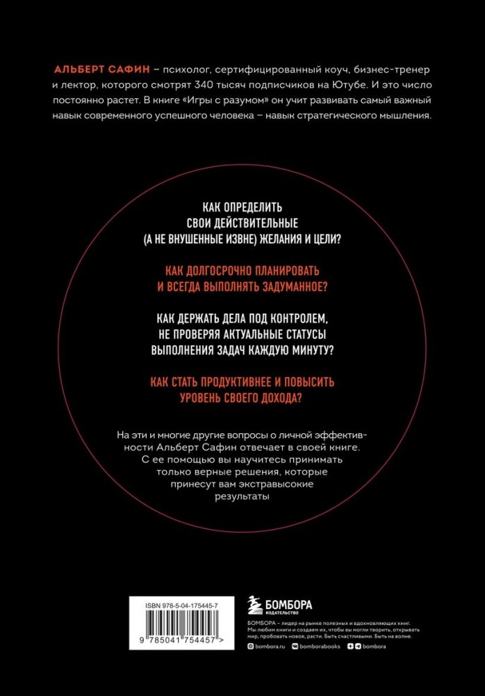 Альберт Сафин — психолог, сертифицированный коуч, бизнес-тренер и лектор, которого смотрят 340 тысяч подписчиков на Ютубе. И это число постоянно растет. В книге «Игры с разумом» он учит развивать самый важный навык современного успешного человека — навык стратегического мышления.