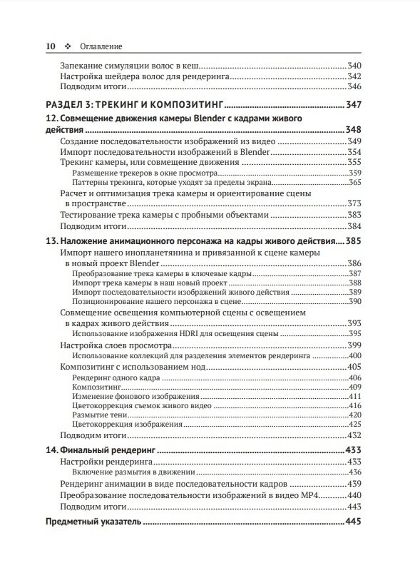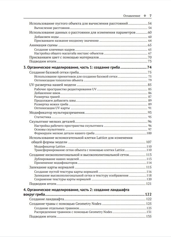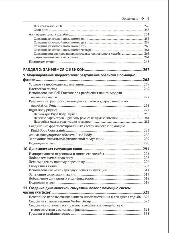 Эта книга посвящена рабочим процессам, связанным с визуальными эффектами (VFX), – таким как ноды геометрии, органическое моделирование, 3D-трекинг камеры, фотограмметрия, скульптинг, физические симуляции и композитинг. Вы узнаете, как использовать ноды геометрии для создания динамических сцен, а также выполнять 3D-сканирование объектов реального мира с помощью фотограмметрии. Выясните, как с нуля моделировать, оснащать кинематическими связями и анимировать своих собственных 3D-персонажей. Затем с помощью физических симуляций научитесь разбивать объект на части, использовать их для создания реалистичной одежды и шевелюры персонажа. Наконец, изучите настройки финального рендеринга и экспортируете свой шедевр 3D-анимации в виде последовательности кадров или видеофайла.