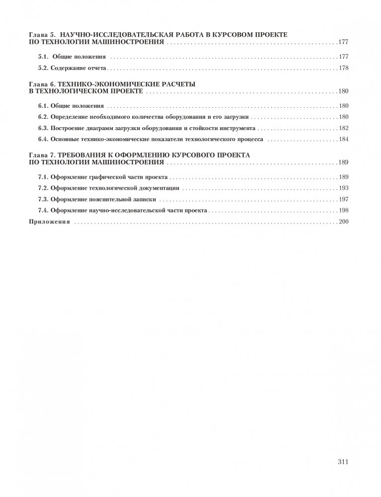 В учебном пособии рассмотрены содержание и методы выполнения курсового проекта по "Технологии машиностроения" и родственным дисциплинам "Технология станкостроения", технология двигателестроения и другим студентами машиностроительных специальностей вузов. Раскрыты методы анализа исходной информации, выбора типа и организационной формы производства, методов получения заготовки, выбора технологических баз, маршрута обработки с экономическим обоснованием, оборудования, оснастки, расчетов припусков, режимов резания, технических норм времени, количества и загрузки оборудования, средств автоматизации и механизации производства. Рассмотрены вопросы расчета технологических размерных цепей, возможности станков с ЧПУ, методов упрочнения, электрофизических методов обработки, особенности автоматизации и механизации основных и вспомогательных производственных процессов. Приведен обширный справочный материал о возможностях различных методов получения заготовок и обработки деталей машин, характеристиках и стоимости отечественного и зарубежного оборудования и оснастки. Имеются данные, необходимые для технического нормирования работ на металлорежущих станках, в том числе с ЧПУ, для выбора СОЖ, оформления технологической документации.