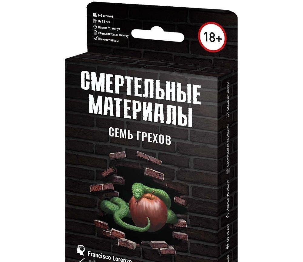 Настольная игра "Смертельные материалы: Семь грехов" – это карточный детективный квест в лучших традициях жанра Escape Room (побег из комнаты). В начале игры шестеро преступников, совершивших один из смертных грехов, оказываются запертыми в необычной комнате: на их шеях ошейники, бьющие током, а память стёрта – они не помнят ничего ни о себе, ни друг о друге. Проявите максимальную сосредоточенность и помогите героям заслужить жизнь, хоть и в неволе, но всё же. Если, конечно, справитесь с испытаниями. Или же если захотите. Никто не знает, какие подробности вскроются о каждом герое...