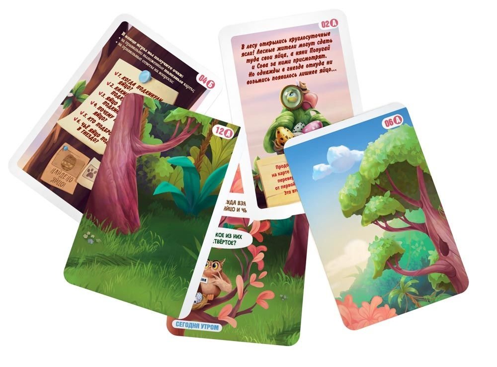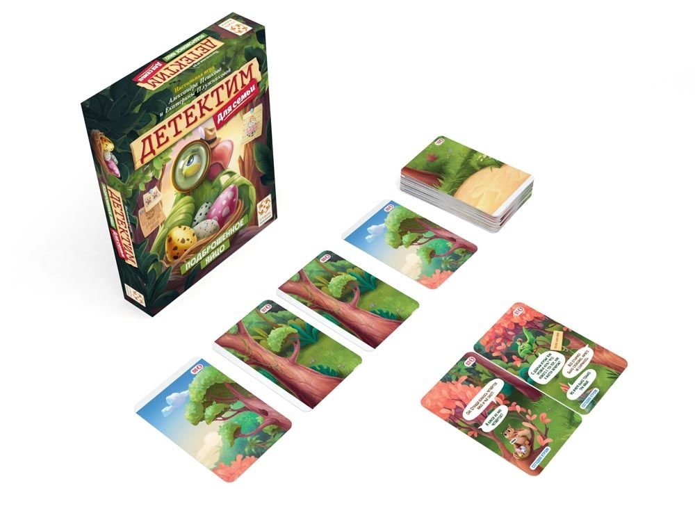 В карточной детективной игре "Детектим для семьи: Подброшенное яйцо" игроки сообща будут составлять общую картину произошедшего: для этого им в прямом смысле слова нужно выложить из карт целостную картину. Но будет ли это так просто? Исследуйте территорию всей деревни и попробуйте докопаться до истины!