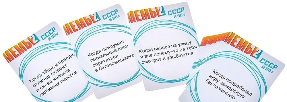 Правила игры "Мемы-2: СССР и 90-е" настолько просты, что объяснены прямо на коробке! В начале раунда ведущий зачитывает одну ситуацию – она может быть смешной, злободневной, неловкой или какой-либо ещё. Следом каждый игрок должен выложить из руки по одной карте мема, который, согласно его мнению, подходит для озвученной ситуации. Когда игроки закончат, ведущий выбирает лучший мем, а его автор получает часть оставшихся карточек в качестве трофеев. Тот, у кого стопка трофеев в конце игры окажется наиболее внушительной, получает почётное звание главного мемолога вашей тусовки!