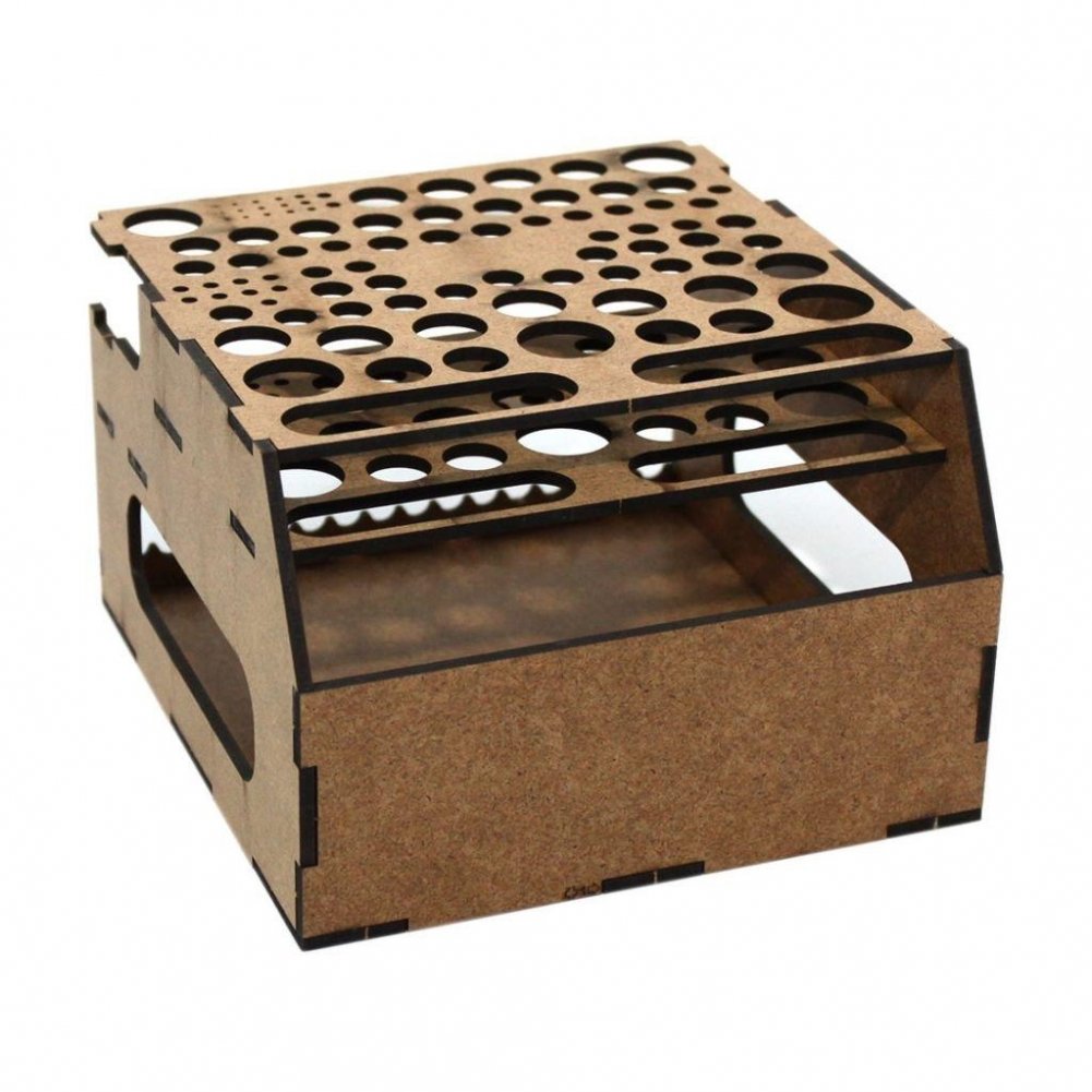 Органайзер предназначен для кисточек, красок и других инструментов и имеет 94 отверстия для фиксации принадлежностей моделиста.