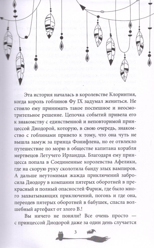 Новые приключения принцессы Диодоры. На этот раз ей предстоит поднять на высоту репутацию злых ведьм, разобраться с проклятыми призраками старого города, выяснить главную тайну водяного и бросить вызов сварливому могущественному колдуну Мраку. В этой книге так много страшного, что, кажется, будет не до смеха. Но на самом деле все наоборот — так смешно бояться вам еще не приходилось!