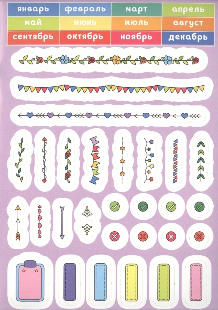 Стикербук станет отличным помощником в планировании! Наклейки позволят расставить акценты на странице именно так, как нужно тебе. Внутри есть наклейки с названиями месяцев, с пометками о срочности и важности дел, а также много симпатичных стикеров, которыми приятно украсить свой точкабук.