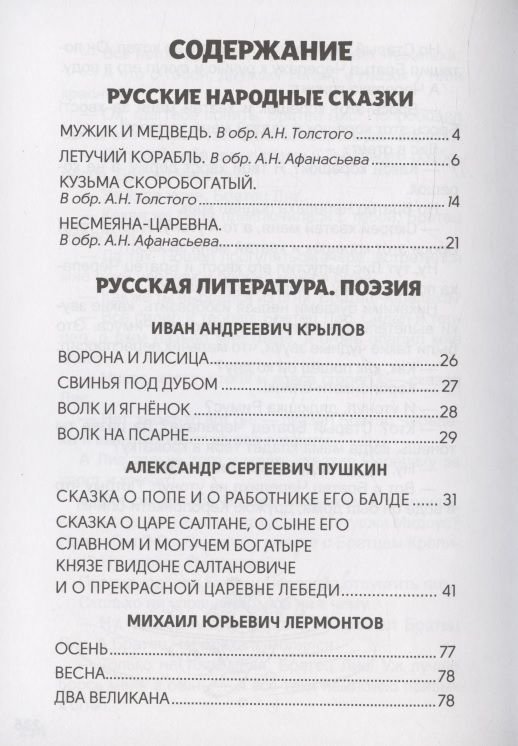 Хрестоматия включает в себя произведения русской народнойлитературы, прозу и поэзию русских классиков, а также сказки зарубежных авторов. Все произведения, составившие хрестоматию, входят в программу начального образования.