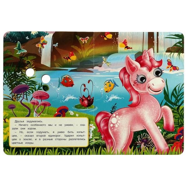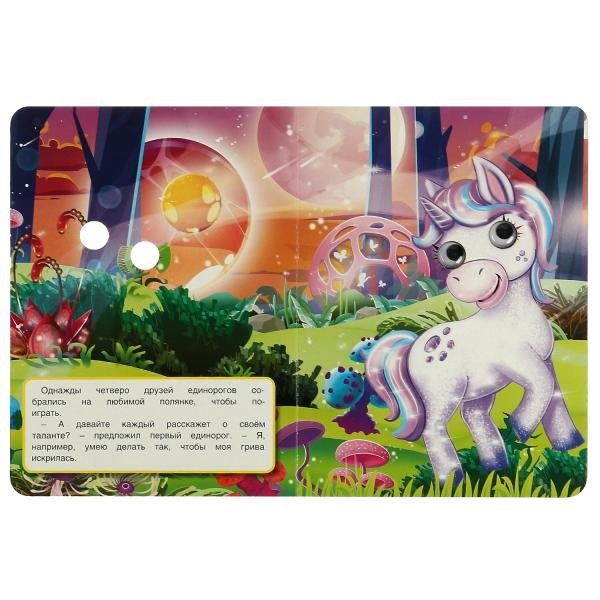 Чудесная книжка с волшебными глазками – лучший друг любого малыша. Отправляйся вместе с друзьями-единорогами на волшебную полянку и узнай, какие таланты есть у каждого из них.