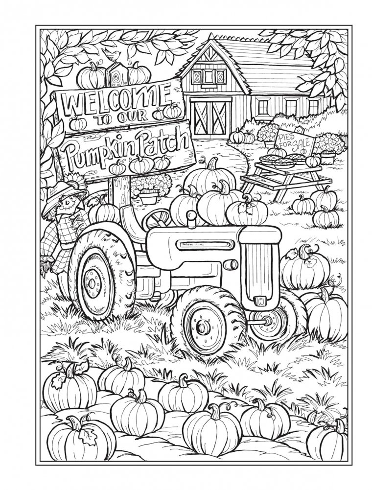 Color it autumn! This festive collection of 31 charming illustrations celebrates the joys of the fall season. The beautiful scenes feature picturesque images of idyllic country landscapes, harvest wreaths, decorative Halloween displays, cheery pumpkins, sunflowers, and mums — plus cute scarecrows and gnomes! Relax and enjoy as you bring these delightful designs to life with vibrant color! The artwork is printed on one side only, and the pages are perforated for easy removal and display.