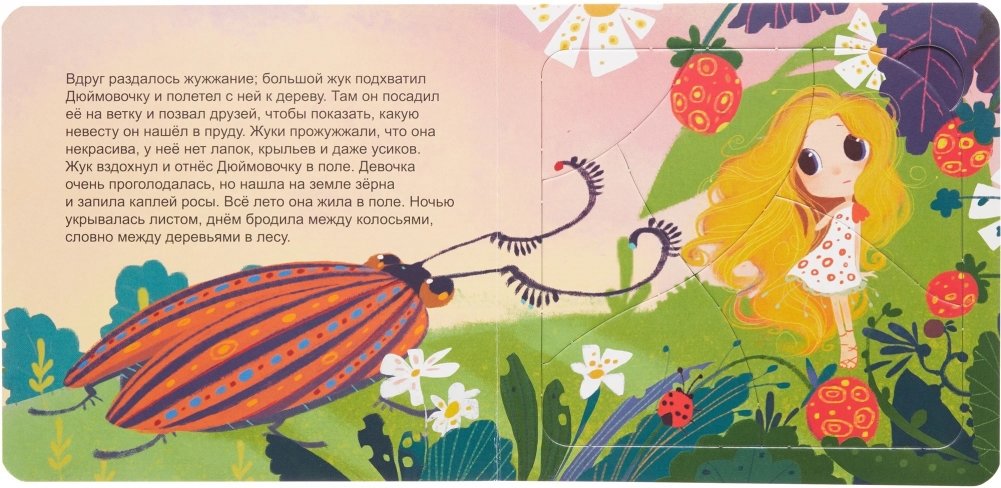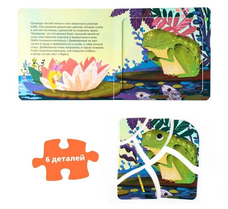 Книжка-игрушка "Дюймовочка" разработана для стимулирования речевой активности детей. Развивает мелкую моторику и логику, а также содержит оригинальные картинки-пазлы.