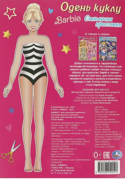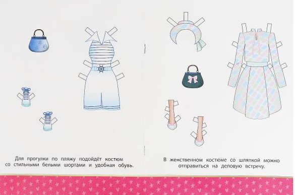 Юный дизайнер с удовольствием будет вырезать одежду для очаровательной куколки Барби и подбирать для неё разнообразные наряды, а потом играть с ней, устраивая настоящие показы мод. Девочка может не только воспользоваться подобранными в данном альбоме комплектами одежды, но и придумать и нарисовать свои варианты, проявив фантазию и творчество.