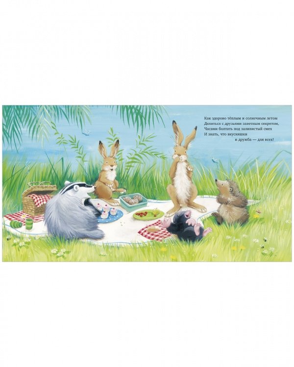 Ребенок будет в восторге не только от коротких стихотворений, но и от картинок Джейн Чапмен, английской художницы и писательницы, которая покорила сердца тысяч читателей. Уже больше 20 лет она занимается иллюстрированием детских книг, и каждая из них становится бестселлером. Детально прорисованные персонажи — кролики, ежики, еноты, на каждом из которых можно разглядеть буквально любую шерстинку, — покорят и детей, и взрослых.