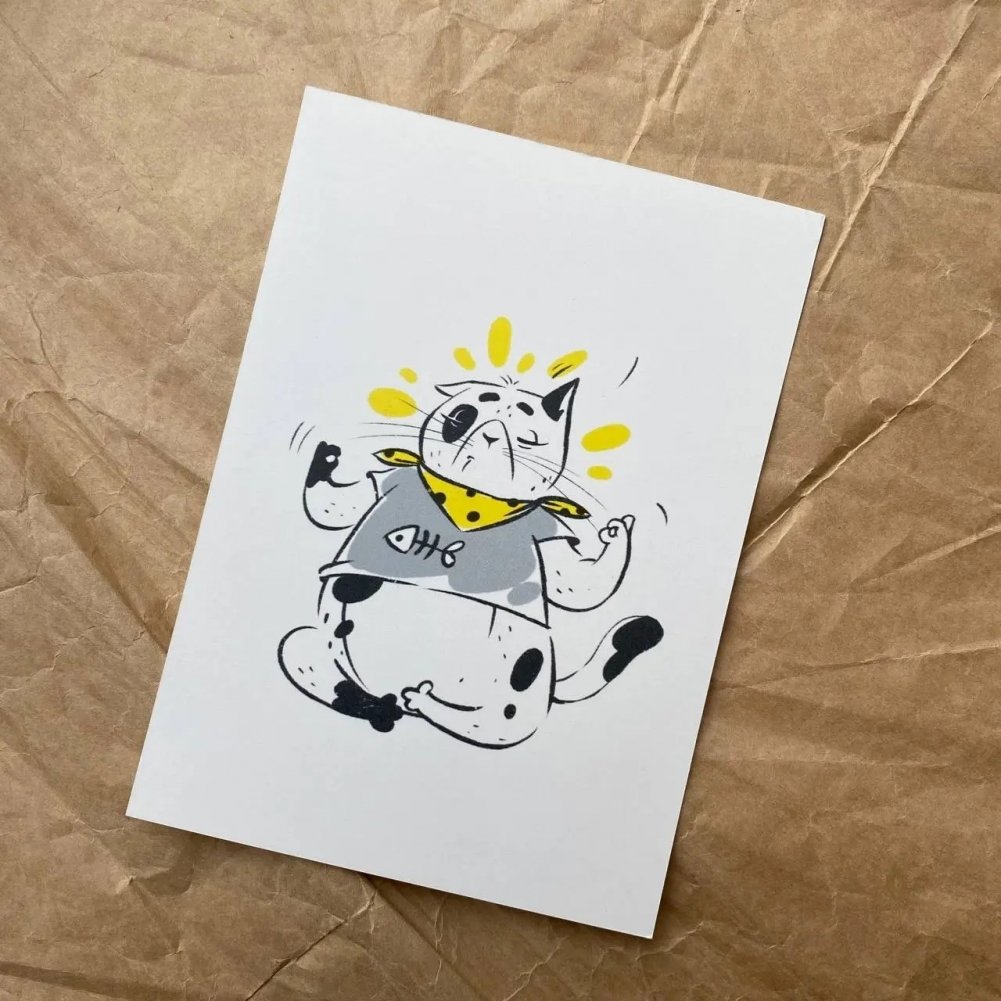 Почтовая открытка с иллюстрацией художницы Екатерины Варжунтович к книге "Кинокухня. История и рецепты большого кино".