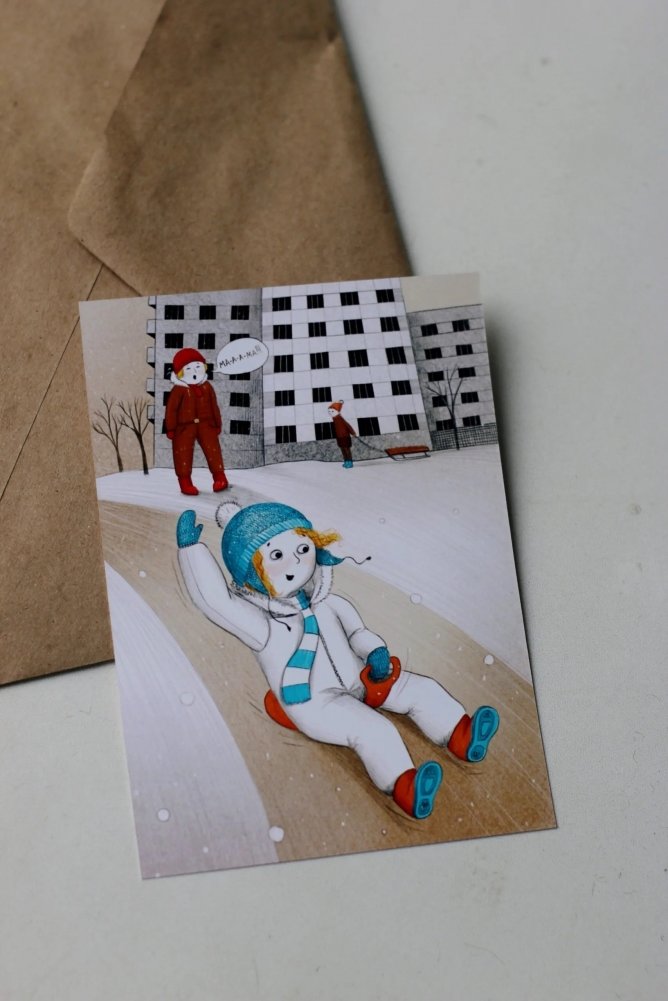 Открытка "Удивительная девочка. Горка"