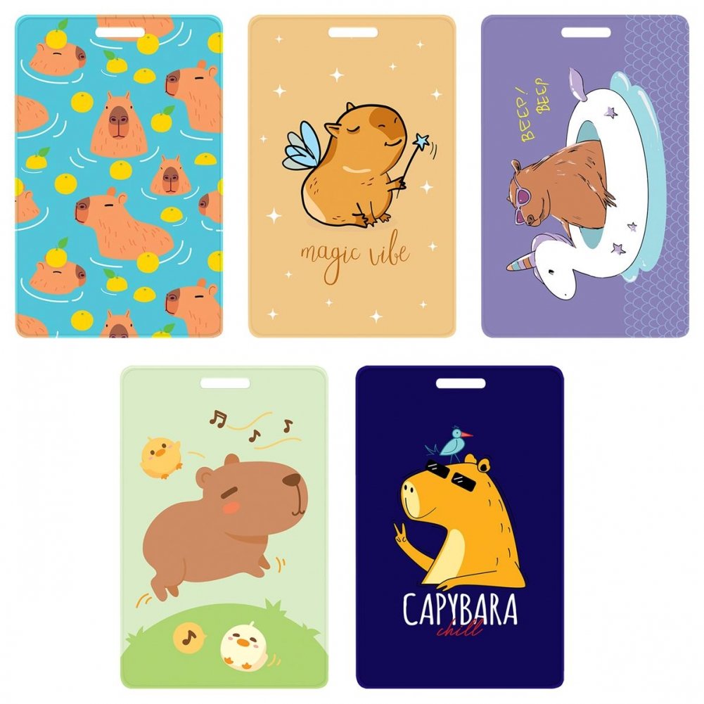 Обложка-карман для карт и пропусков OfficeSpace "Капибара", 95х65 мм, ПВХ, ассорти. Арт. PC_55425
