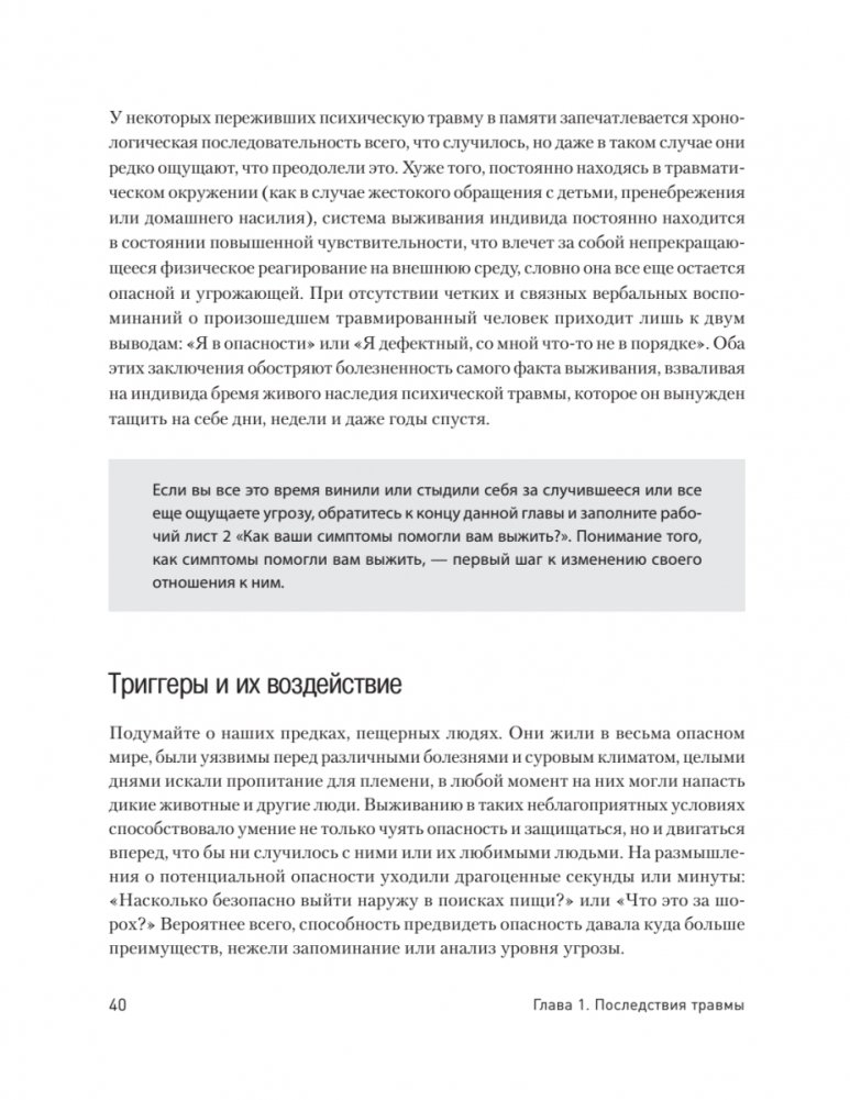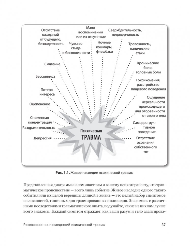 Травматический опыт оставляет "живое наследие", которое порой сохраняется в течение многих лет и десятилетий после окончания событий. Как справиться с этими последствиями? Доктор Янина Фишер, международный эксперт по психотравме, предлагает пошаговые стратегии, которые можно использовать самостоятельно или в сотрудничестве с терапевтом. В книгу включены диаграммы, которые дают представление о запутанных чувствах и физических реакциях переживших травму, и рабочие листы для отработки новых навыков.