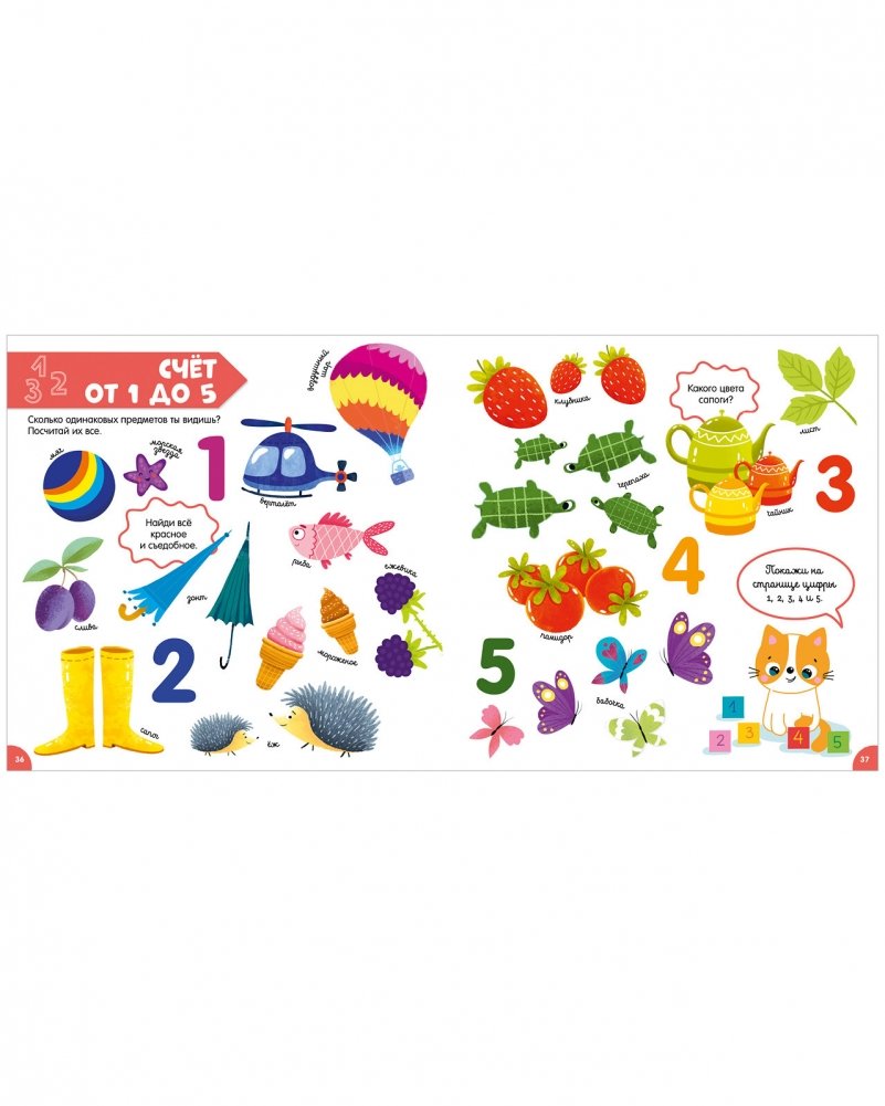 В книге собраны самые важные темы для обучения и развития: цвета, формы, цифры, речь.