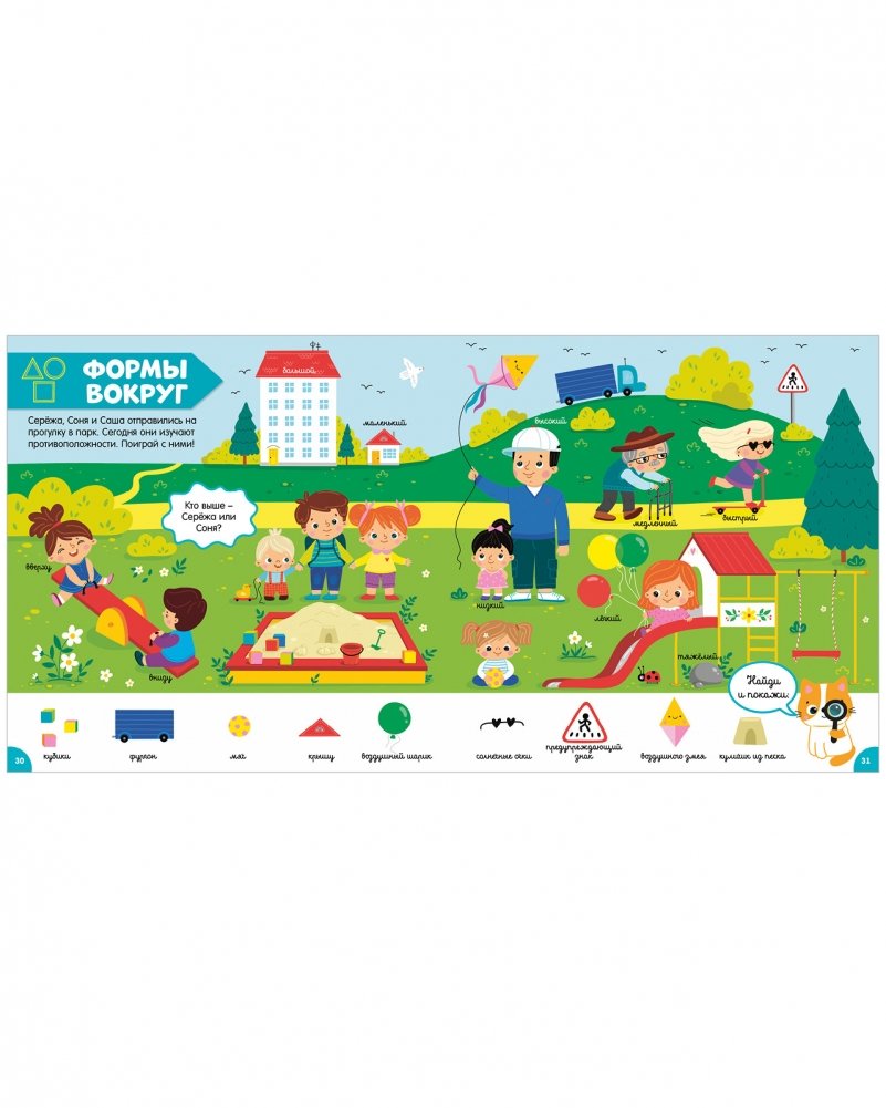 А на каждой странице ждут разнообразные задания: «найди и покажи», лабиринты, загадки, «чего не хватает», «найди пару».