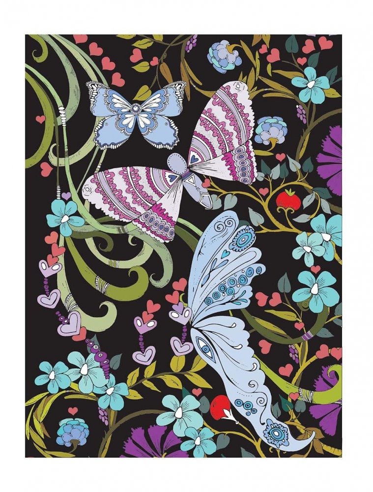 Celebrate love and romance any day of the year with this charming coloring book! The 31 original illustrations feature beautiful designs overflowing with hearts, flowers, butterflies and birds…many printed with dramatic black backgrounds that create a striking color finish. The variety of sweet themes offer an array of wonderful coloring possibilities and will encourage you to relax and unwind as you dream about a “happily ever after.” The art is printed on one side only, and the pages are perforated for easy removal and display.