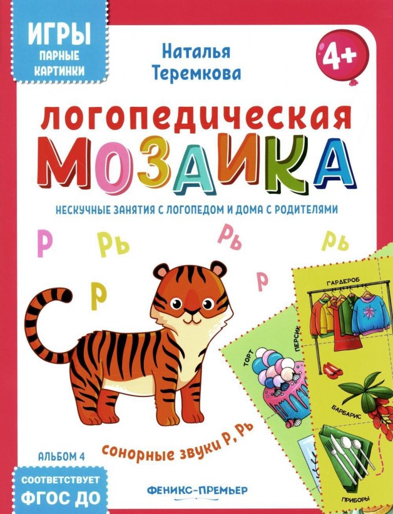 Игры с логопедом состоят из четырёх альбомов для настольной работы с детьми. В альбомах представлен разрезной материал в виде карточек, которые легко складываются в мозаику.