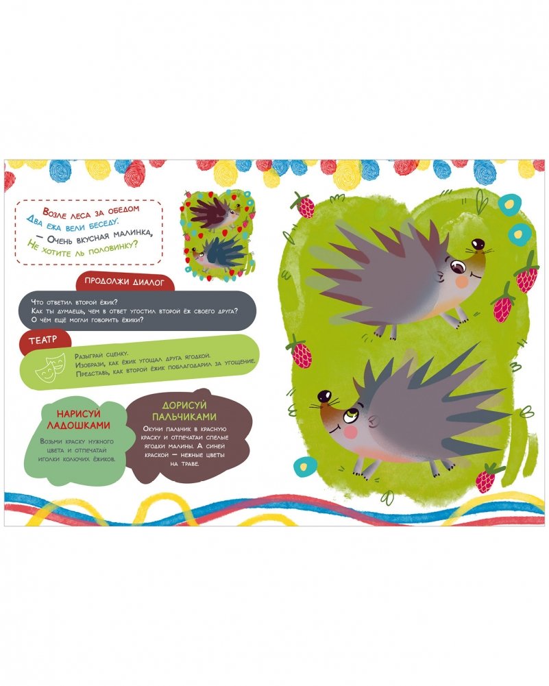 За одно занятие по книжке «Рисуем ладошками и пальчиками» ребенок дорисует эскиз картинки, выучит короткое ритмичное стихотворение. А еще у вас будет тема для обсуждения после занятия.