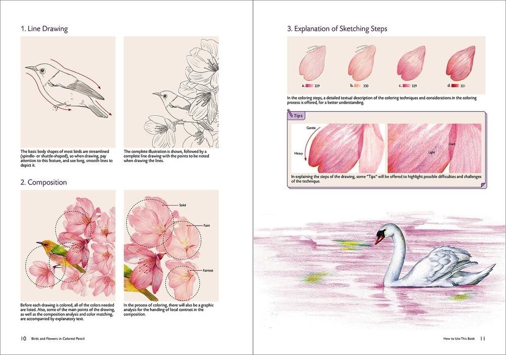 - Master the process of drawing 10 types of flowers and 10 types of birds;
