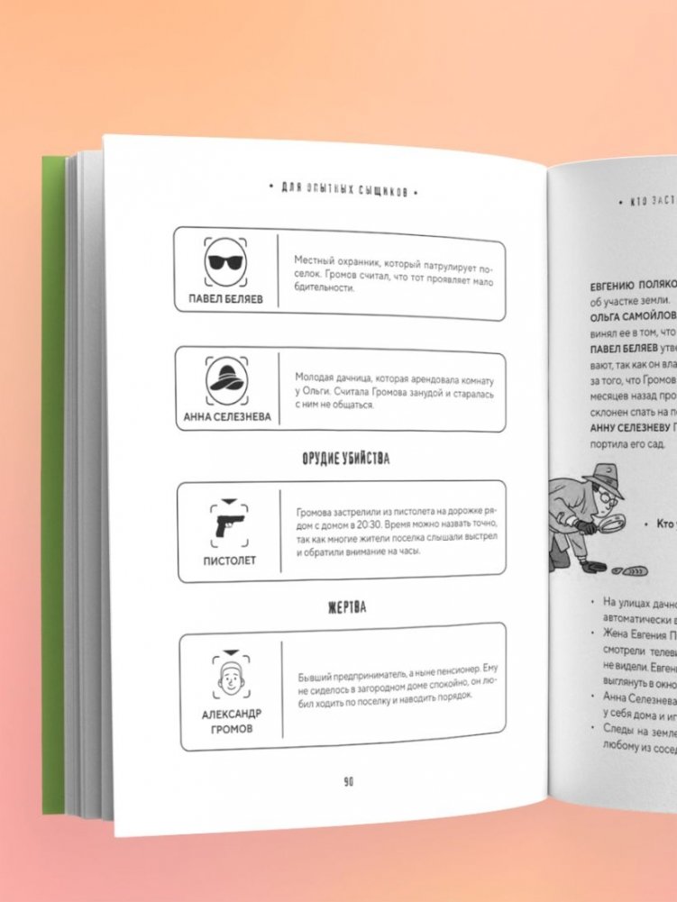 Давно хотели попробовать себя в роли настоящего сыщика? Тогда вас ждет 40 увлекательных детективных головоломок, с которыми вы сможете испытать свою смекалку и интуицию! Хмурый охранник, подозрительный администратор отеля или скандальный журналист – кто убийца? Решать вам! В книге представлены задачки любого уровня: как для начинающих детективов, так и для специалистов высшей категории. Прокачайте логику, разгадывая запутанные дела: изучайте мотивы каждого подозреваемого, обращайте внимание на зацепки и улики, сопоставляйте факты, заполняйте дедуктивные сетки – и вы обязательно придете к верным выводам!