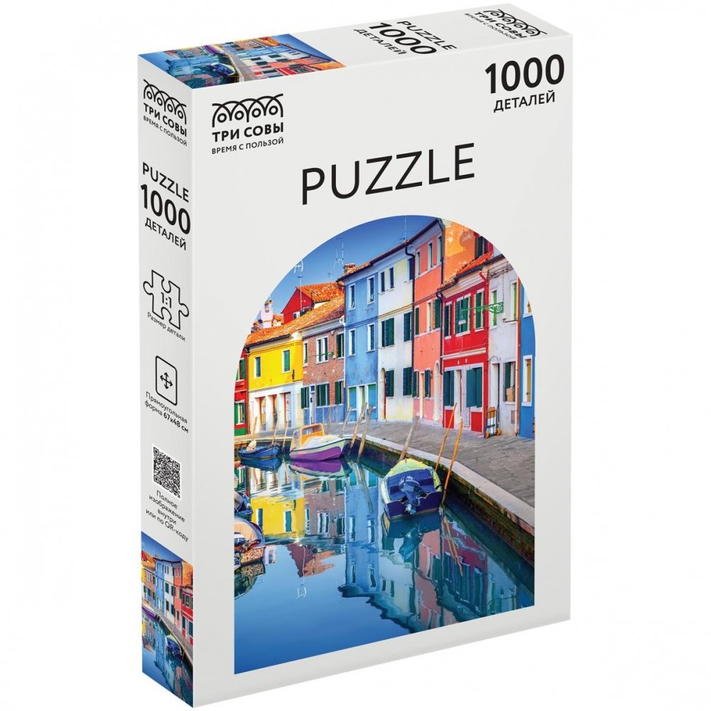 Пазлы «ТРИ СОВЫ» – это большой выбор иллюстраций, яркие и чёткие цвета и высокий уровень полиграфии. Пазл «Бурано. Италия» состоит из 1000 элементов. В результате у вас получится прекрасная картина. Пазлы изготовлены из плотного специализированного картона, который обеспечивает высокую сцепку деталей. Процесс сборки головоломки будет увлекателен для всей семьи и поможет провести время интересно и с пользой, потому что это занятие способствует развитию образного и логического мышления, памяти и мелкой моторики. Пазлы упакованы в прочную красивую коробку и станут отличным подарком!