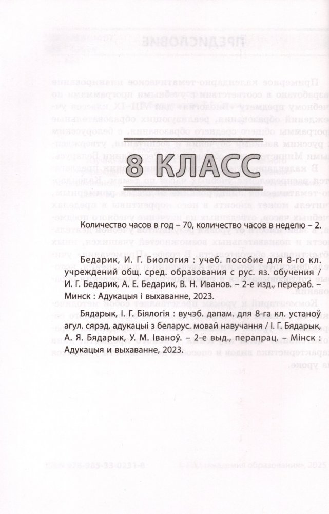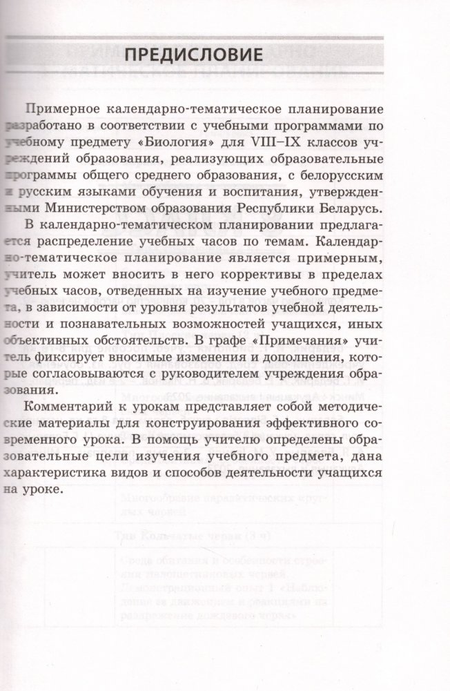 Примерное календарно-тематическое планирование разработано в соответствии с учебными программами по учебному предмету "Биология" для VIII-IX классов учреждений образования, реализующих образовательные программы общего среднего образования, с белорусским и русским языками обучения и воспитания, утвержденными Министерством образования Республики Беларусь.