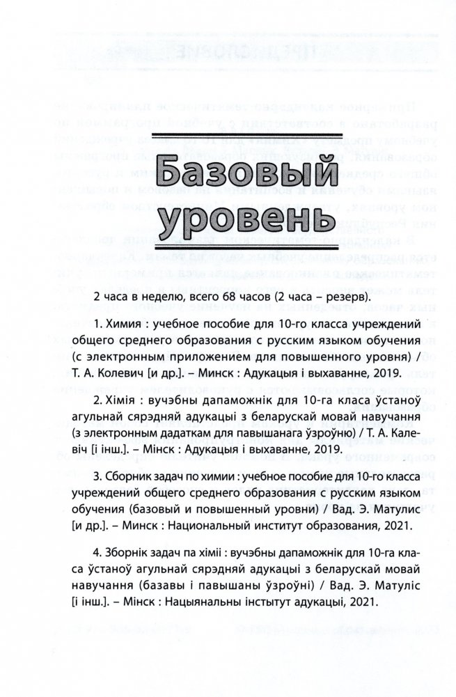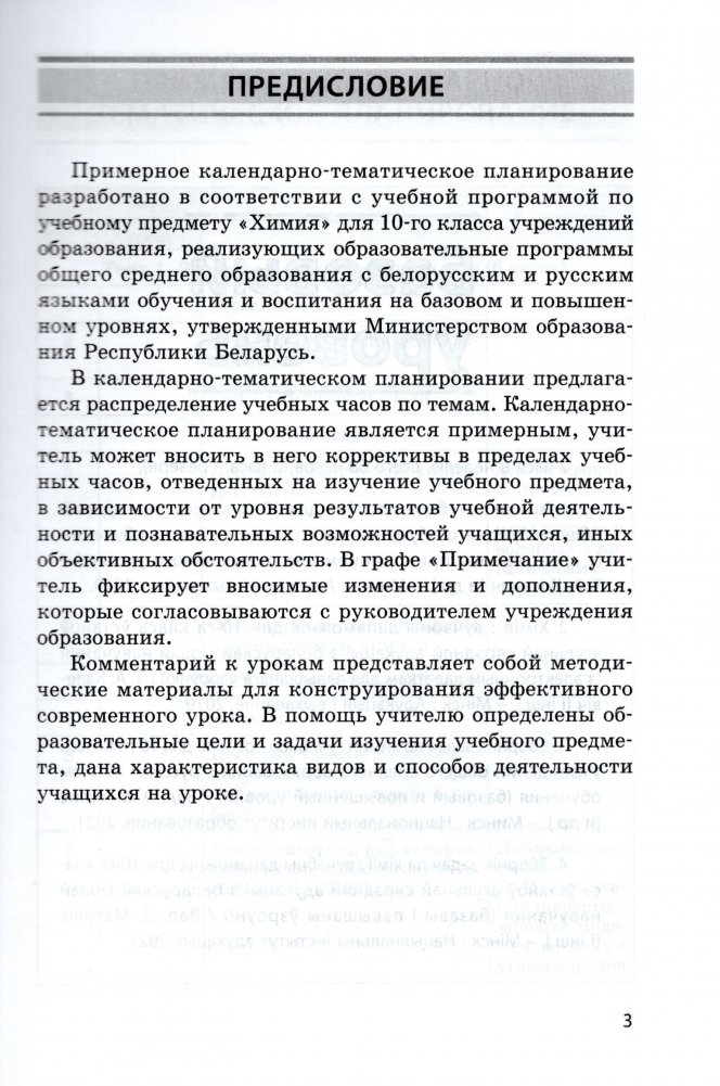 Примерное календарно-тематическое планирование разработано в соответствии с учебной программой по учебному предмету "Химия" для 10-го класса учреждений образования, реализующих образовательные программы общего среднего образования с белорусским и русским языками обучения и воспитания на базовом и повышенном уровнях, утвержденными Министерством образования Республики Беларусь.