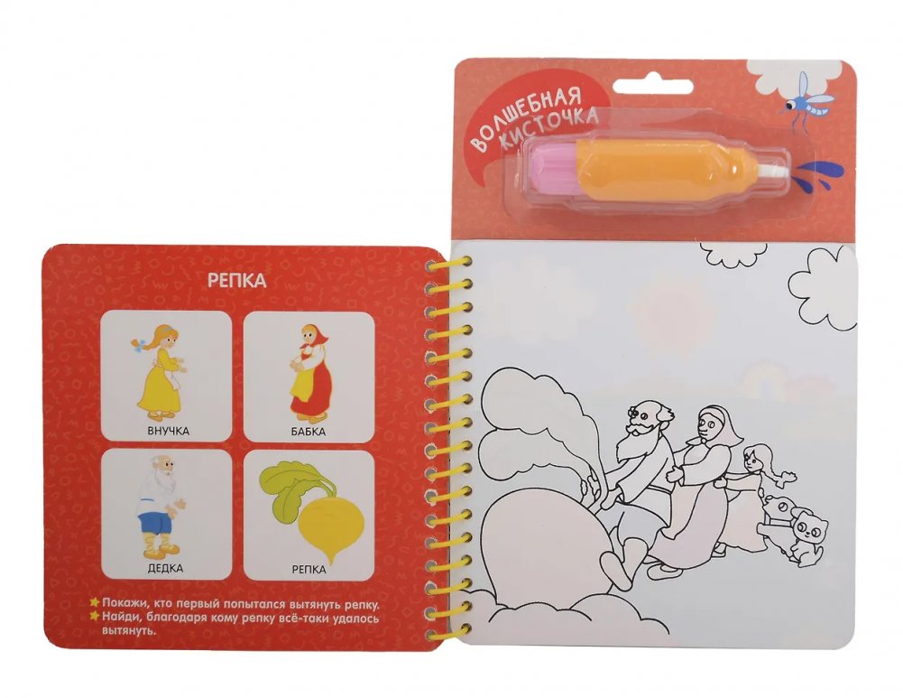 Вашему вниманию предлагается многоразовая водная раскраска с кисточкой Найди и раскрась "Любимые сказки"