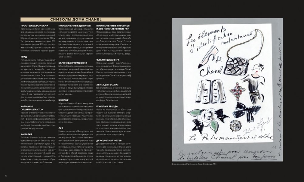 - историю формирования кода стиля Шанель: твид, барочные украшения, духи № 5, жемчуг, двухцветные туфли и многое другое;